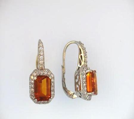 14k White Gold Emerald Cut Orange Citrine and Diamond Earrings A36042