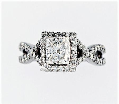 14kt White Gold Princess Cut Diamond Halo Engagement Ring Select Center Stone A37061
